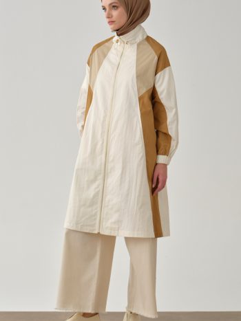 معطف واقي من المطر بتفاصيل مشقوقة – بيج-جملي