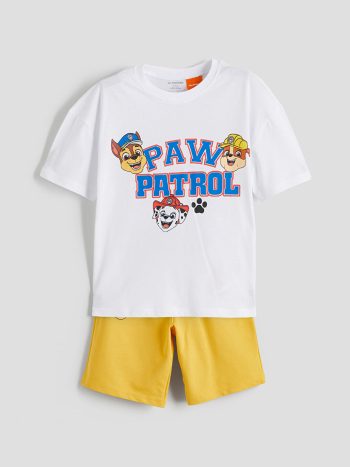 تيشيرت وشورت للأولاد من مجموعة باو باترول بيضاء مطبوعة من قطعتين