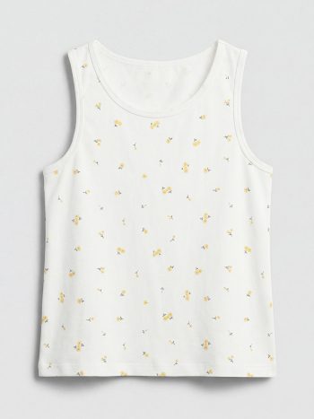 فانلة صدرية للبنات بلون البيج مع طوق الدراجة وطباعة الأزهار – 2 قطعة