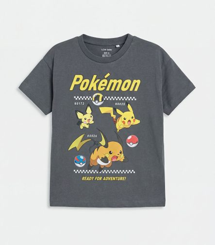 تيشيرت أطفال أولاد مطبوع عليه بوكيمون باللون الرمادي