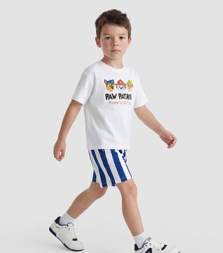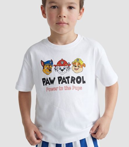 تيشيرت وشورت للأولاد من مجموعة باو باترول بيضاء مطبوعة من قطعتين