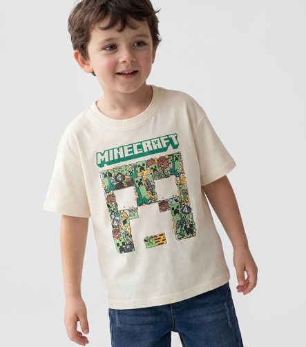تيشيرت أطفال بني فاتح بطباعة ماين كرافت