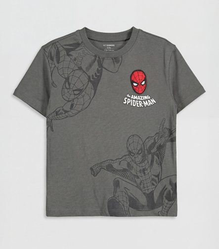 تيشيرت أولاد بطراز سبايدرمان مطرز باللون الرمادي