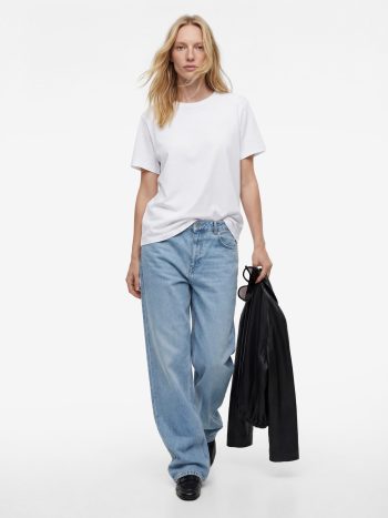 هذا التيشيرت، بتصميمه الأساسي، يصبح عنصراً أساسياً في كل خزانة ملابس. يقدم مظهراً كلاسيكياً ومريحاً مع أكمام قصيرة ورقبة مستديرة.
