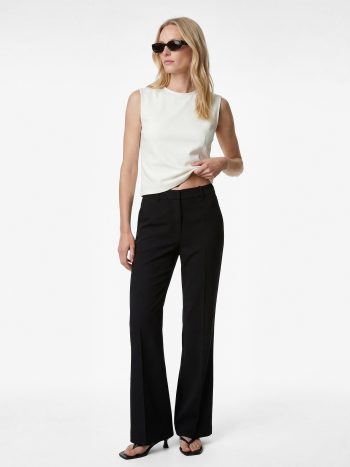 بنطلون نسيج واسع من الأسفل بتفاصيل متموجة وقصة ضيقة