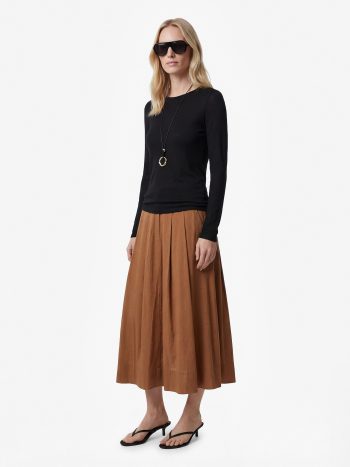 تنورة ميدي من قماش المودال بتجعدات وخطوط وجيوب