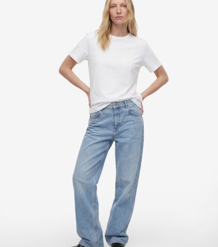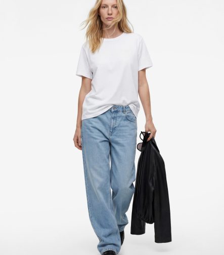 بنطال واسع الساقين بخليط فيسكوز وخصر مرتفع
