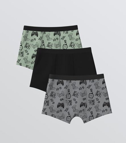 بوكسر أطفال بنمط أخضر ٣ قطع