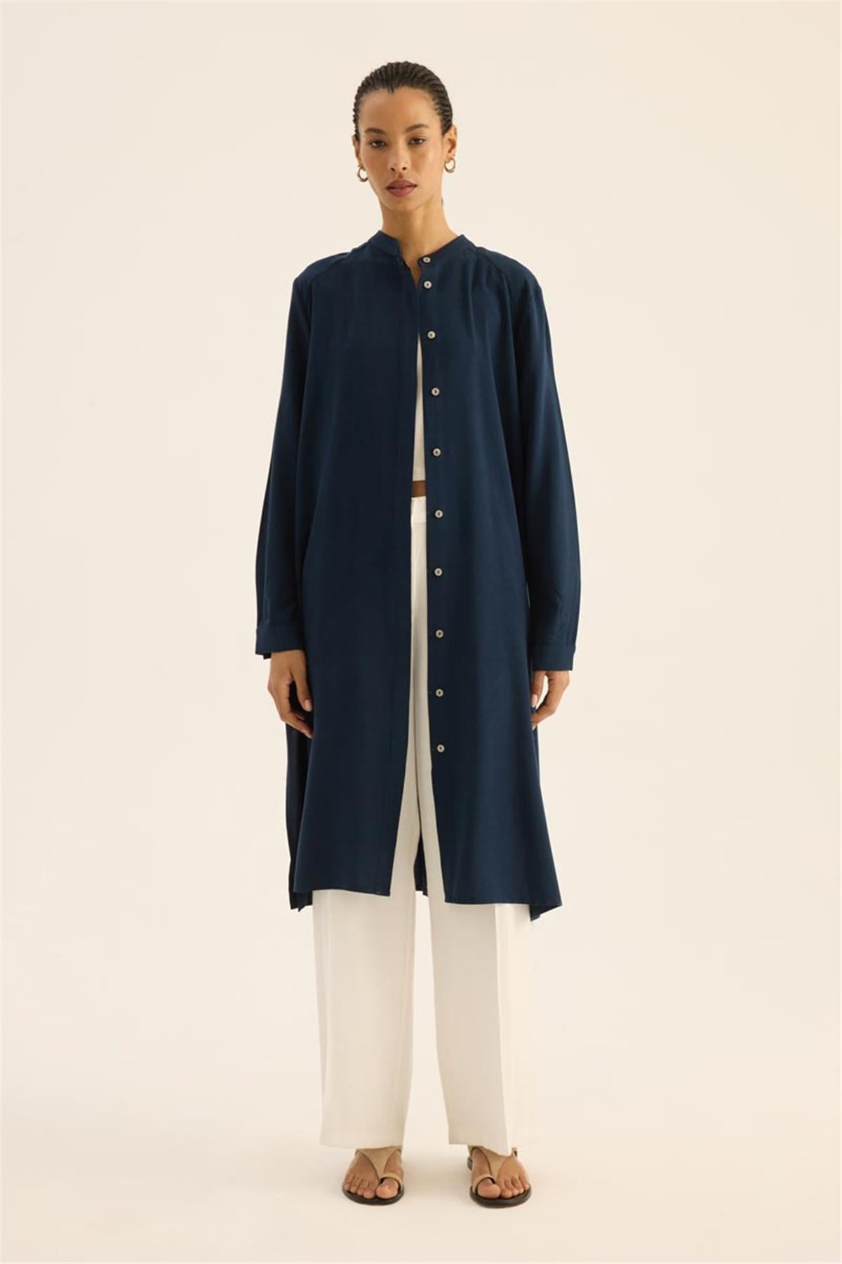 مجموعة فيسكوز مع طوق مستقيم وطيات