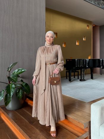فستان طويل بني بتفاصيل مشبك D