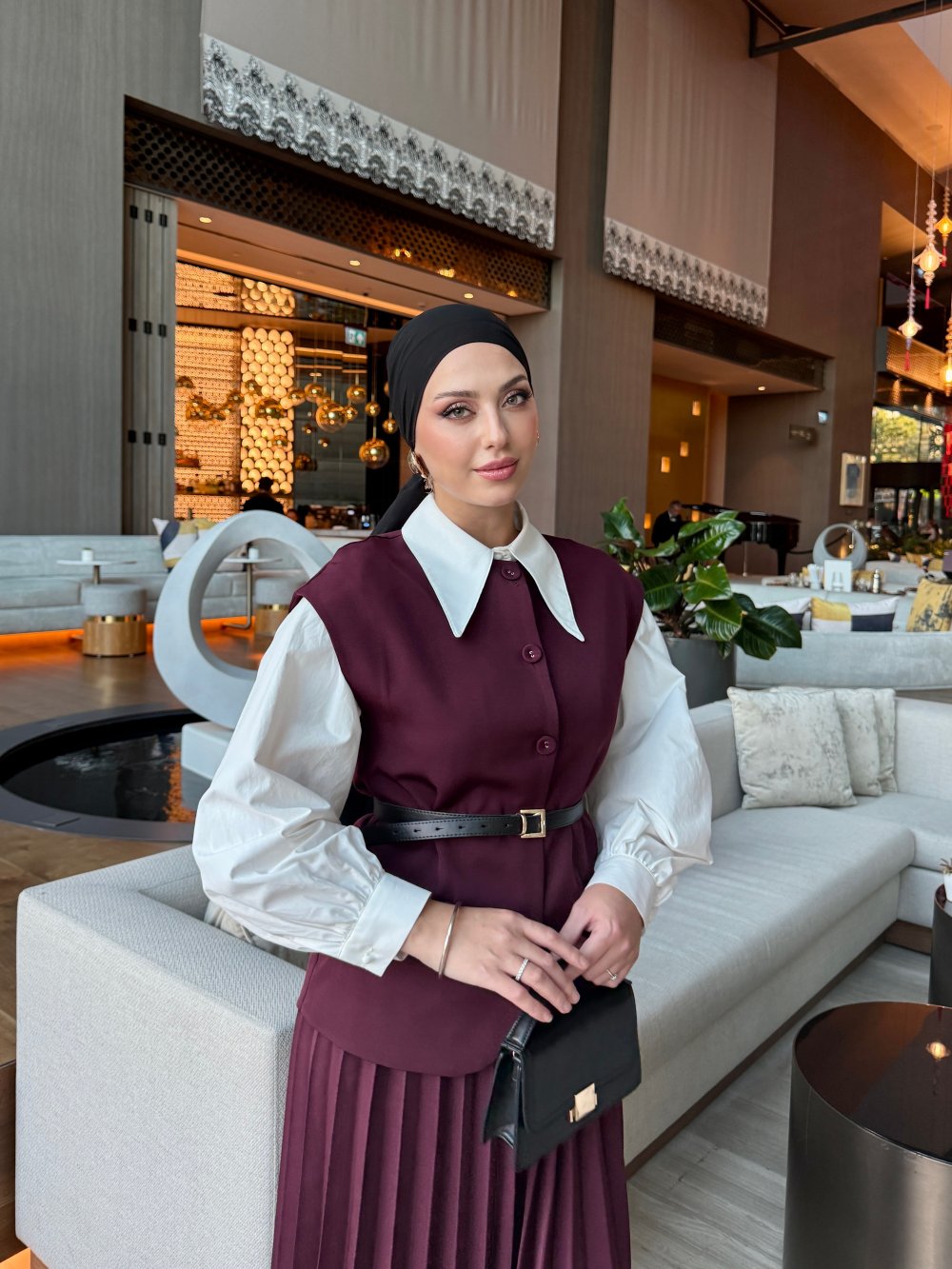 بدلة تنورة مطوية سيراب بلون البرقوق
