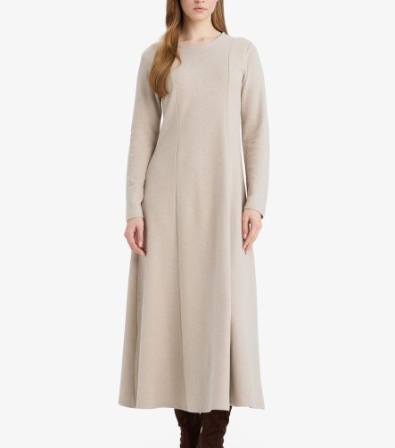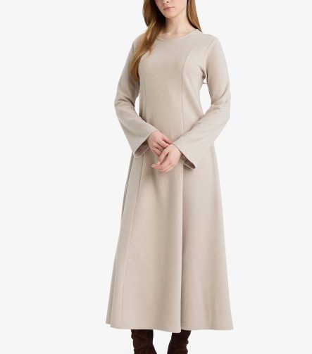 فستان كتان 100% بلون الخاكي