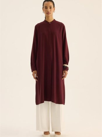 تونيك طويل مخطط من التنسل باللون البورجوندي