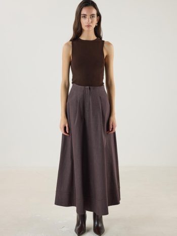 تنورة جينز بنية مقطوعة الطرف بتفصيل كلوش