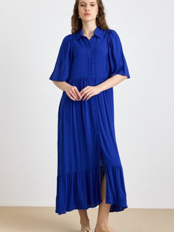 فستان ناعم بنصف كم بتفاصيل مجعّدة SAKS 9418-E