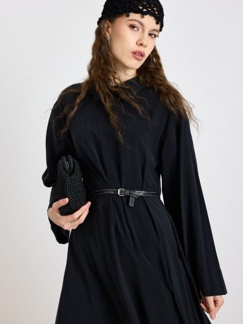 فستان كلاوش من قماش ممتاز مع إكسسوار حزام – أسود 9423-E