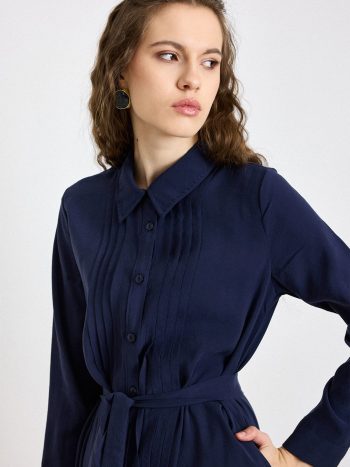 فستان كحلي ناعم بأكمام نصفية وتفاصيل مطوية 9418-E