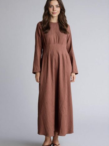 Find the Brown Women’s Boat Neck Crinkled Fabric Long Sleeve Dress you’re looking for at the best price at DeFacto!