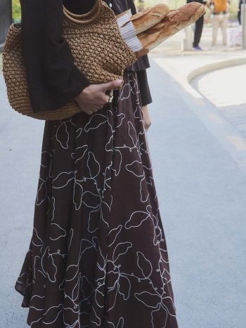 Tulle Skirt with Visible Stitching in Bitter Coffee