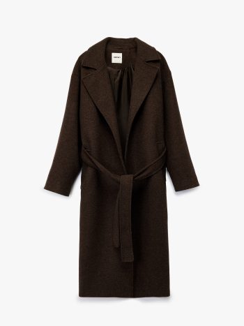 Long Belted Cashmere Coat with Pockets and Long Sleeves