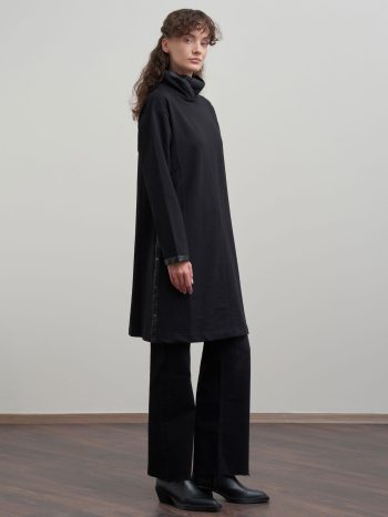 Achieve an elegant look with the Black Leather-Trimmed Cotton Long Tunic, designed for those who seek sophistication in details. Perfect