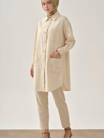 A timeless design meets functional details. The Long Jacket with Pocket Detail offers a stylish and practical look with its