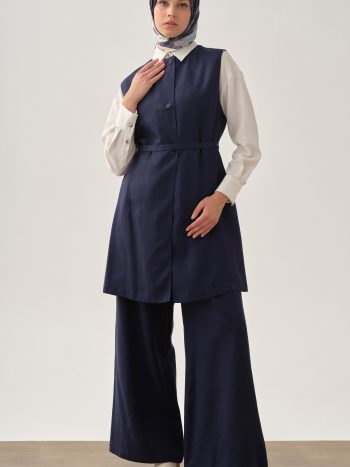 Pleated Detail Trousers with Hidden Pockets – Navy Blue