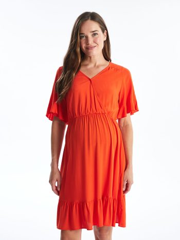 LCWAIKIKI Maternity Orange Cross Collar Plain Short Sleeve Maternity Dress with exclusive discounts, installment options, and cash on delivery advantages