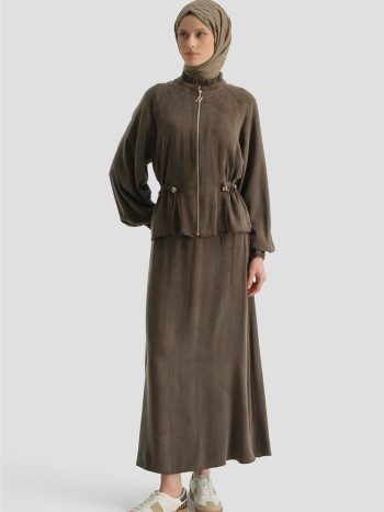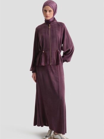 This modal blend knit set offers all-day comfort with its soft texture and fluid form. Featuring a zippered top and
