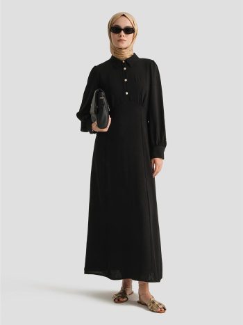 Zamansız şal deseniyle öne çıkan bu elbise, akıcı formu ve uzun siluetiyle zarif bir duruş sunar. Bel kısmındaki kemer detayı