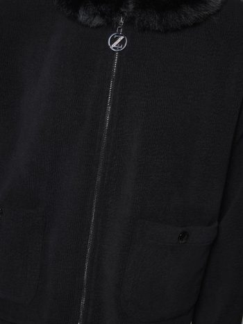 Fur Collar Zipper Jacket Skirt Black Two-Piece Set TK-1730 This sophisticated set, featuring modern lines and elegant details, combines style