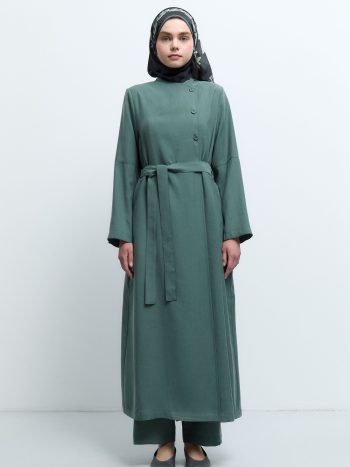 Klasik kesimlerin dışına çıkan bu parça, bel hattındaki ayarlanabilir detayıyla vücut formunu kişiselleştirmenize olanak tanırken, çabasız bir şıklık sunar. Kumaş