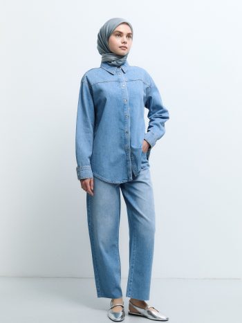 The Embellished Denim Pants enrich timeless denim form with delicately placed embellishments, offering a refined choice for sophisticated and eye-catching
