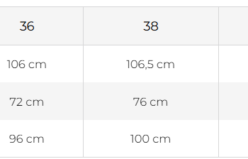Size Assistance Guide SIZE GUIDE Measurements Size 36 Size 38 Size 40 Size 42 Length 106 cm 106.5 cm 107