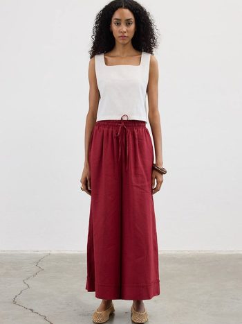 Wide-Leg 100% Linen Trousers in Red