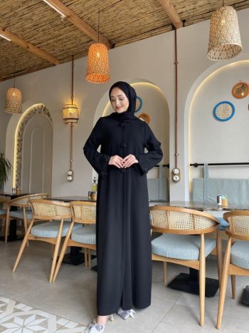 Elevate your modest fashion with this elegant abaya featuring exquisite pearl detailing. Crafted for sophistication and grace, it offers timeless