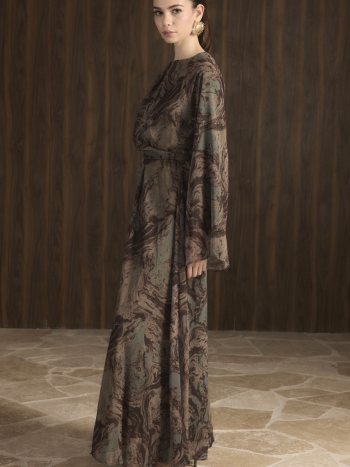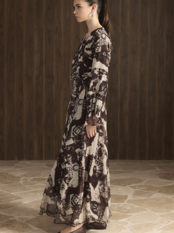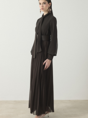 Elevate your wardrobe with our Soley chiffon dress, featuring a delicate skirt and elegant coffee hue. Perfect for special occasions