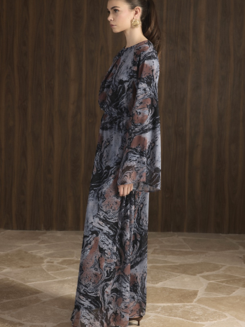 Elevate your wardrobe with this elegant cross-cut patterned chiffon set in a rich brown hue. Crafted from premium chiffon fabric,
