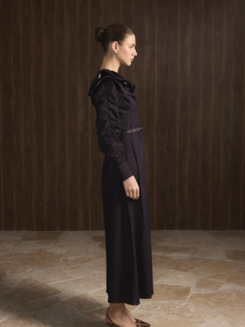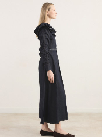 Product Description: This cotton dress stands out with its natural texture and timeless denim elegance, adding a strong touch to
