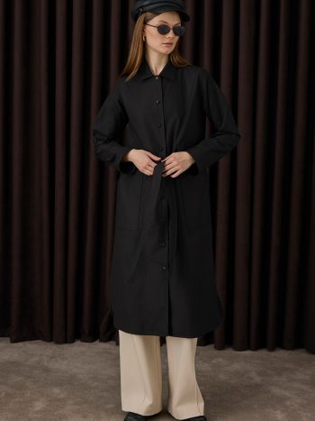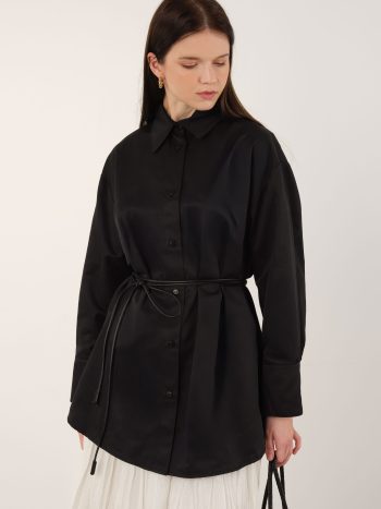 Belt Detailed Long Shirt Black