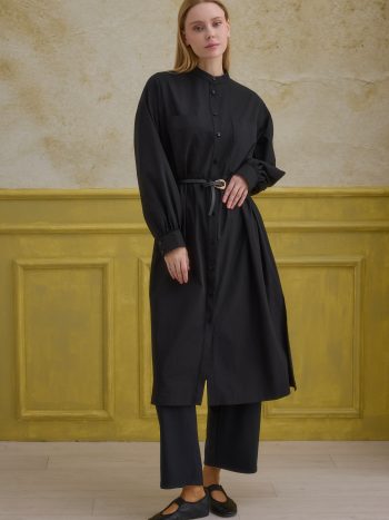 Black Long Tunic with Mandarin Collar