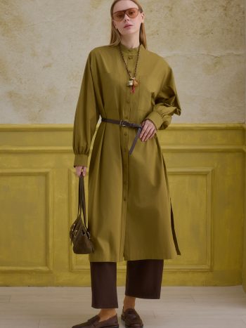 Mandarin Collar Long Tunic Oil Green