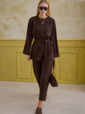 Crafted from a 63% polyester, 34% viscose, and 3% elastane blend, this set combines durability, fluidity, and comfort in a