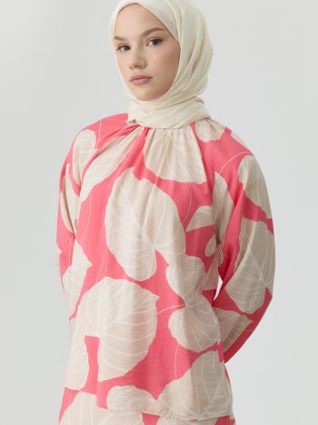 Romantic patterns meet modern details… Adorned with soft-toned floral patterns, this blouse gives a graceful shape to the body with