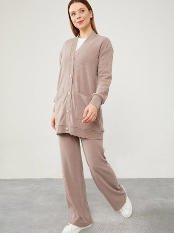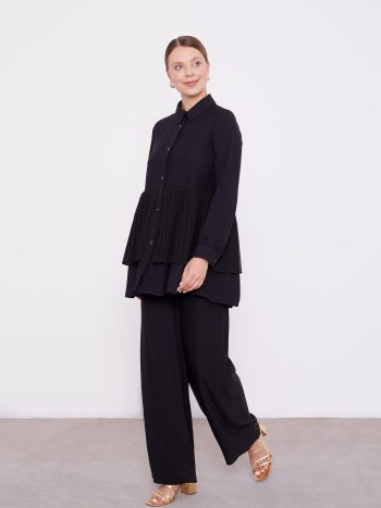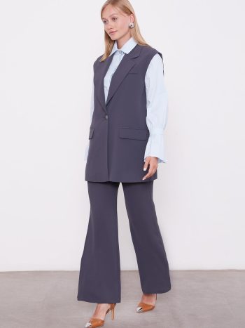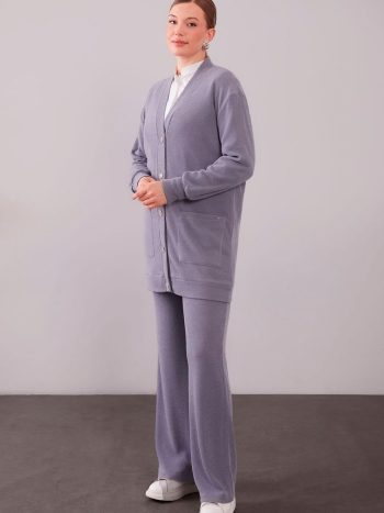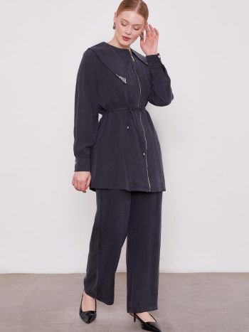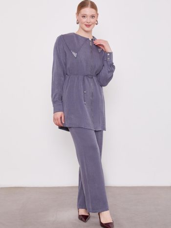 Navy Blue Stone-Embellished Neckline Cupra Two-Piece Set