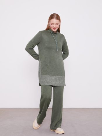 This dress stands out with its aller patchwork design that combines different fabric textures, offering a modern and dynamic look.