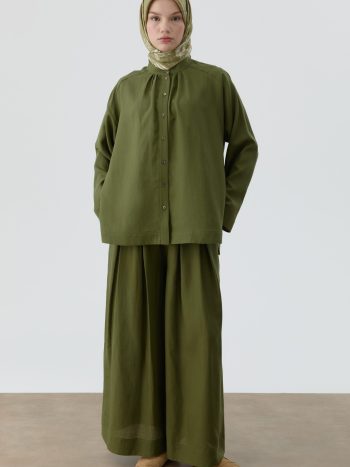 Pleated Detail Trousers with Elastic Waistband – Khaki
