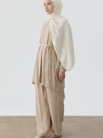 Bol Paça Beli Kemerli Pantolon – Bej