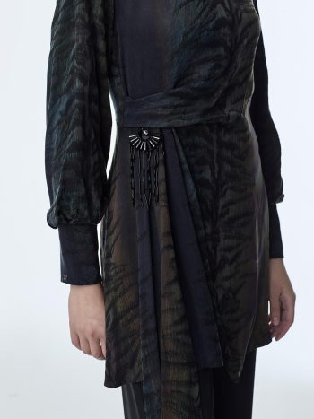 Peacock Pattern Two-Piece Set with Accessory Details TK-1719