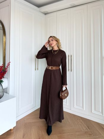 Elbise 1. Sınıf Parlak Efektli Örme Triko Kumaştır. Elbise Çıkarılabilir Kemer Detaylıdır. Elbise Bisiklet Yakalıdır. Elbise Yaka Arkasından Fermuarlıdır. Boy: